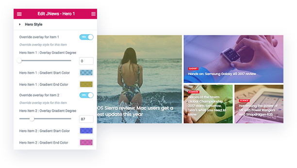 JNews Hero elements is responsive, but it's not enought when you need a custom size. Thats why we adding Hero elements a smart feature so you can easily tweak height of the Hero. You can set the Height to appear on desktop, tablet and also on smartphone.