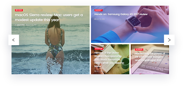 Hero elements include a built-in slider function. You can turn the static Hero element into a slideshow which enables you to display more posts rather than using a static Hero. You can enable automatic slides and tweak the slide delay.