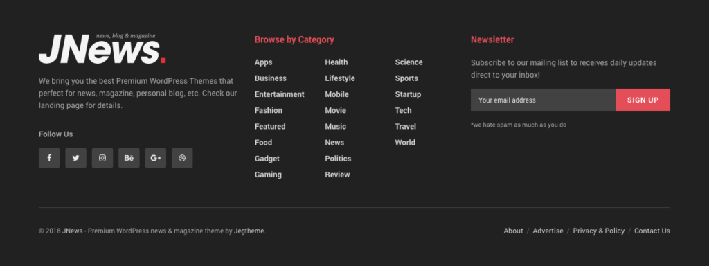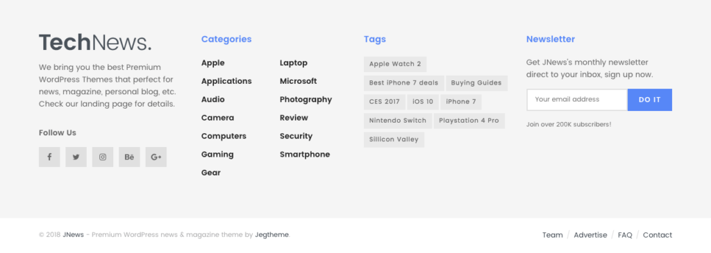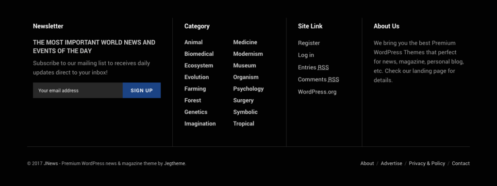 Build your own footer with visual editor or use pre-made footer layouts for your website.