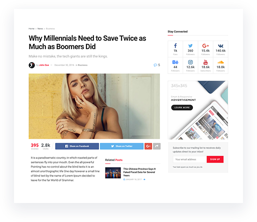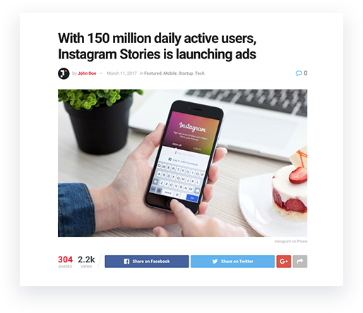 JNews provides you with 10 pre-defined post templates and you can customize it to fit your needs​